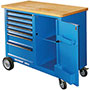 CARRELLI A BANCO GRANDI: 7 CASSETTI; VANO LATERALE A SPORTELLO; 4 RUOTE GOMM.(2 PIROETT.) CON FRENO